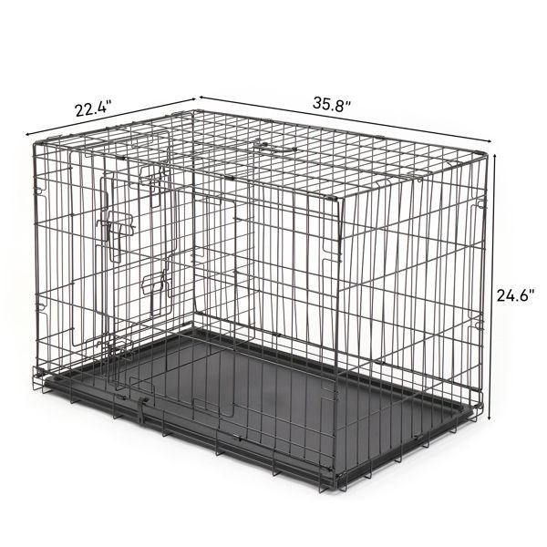 36" Pet Kennel Cat Dog Folding Steel Crate Animal Playpen Wire Metal