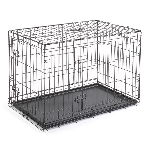Have you ever noticed your dog always sleeps and relaxes under a table or in a corner? This Pet Cage is the perfect solution to make your pet feel more secure and confident. These premium quality metal pet crates are crafted using commercial-quality materials and superior manufacturing. The crates feature multiple doors that lock easily with a slide-bolt latch, with a durable black electro-coat finish. To set-up, simply unbox and fold open; no tools are required. Each crate features a lightweight, slide-out tray made of durable ABS plastic.