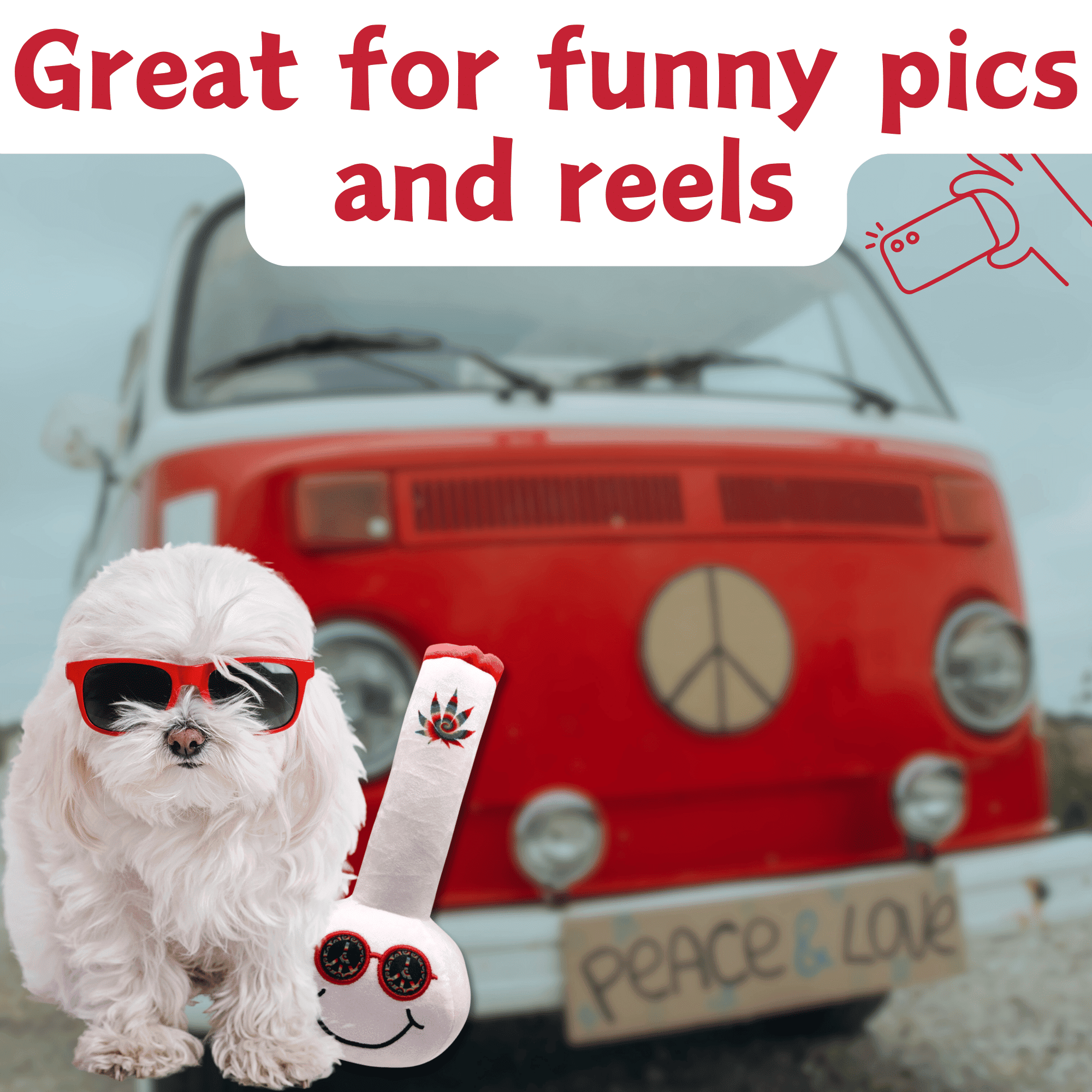 Billie is a groovy bong about 10" high with a built-in squeaker. He is great for light play or for funny pics of your dog with his own bong! Your pup will love joining you for 4:20!