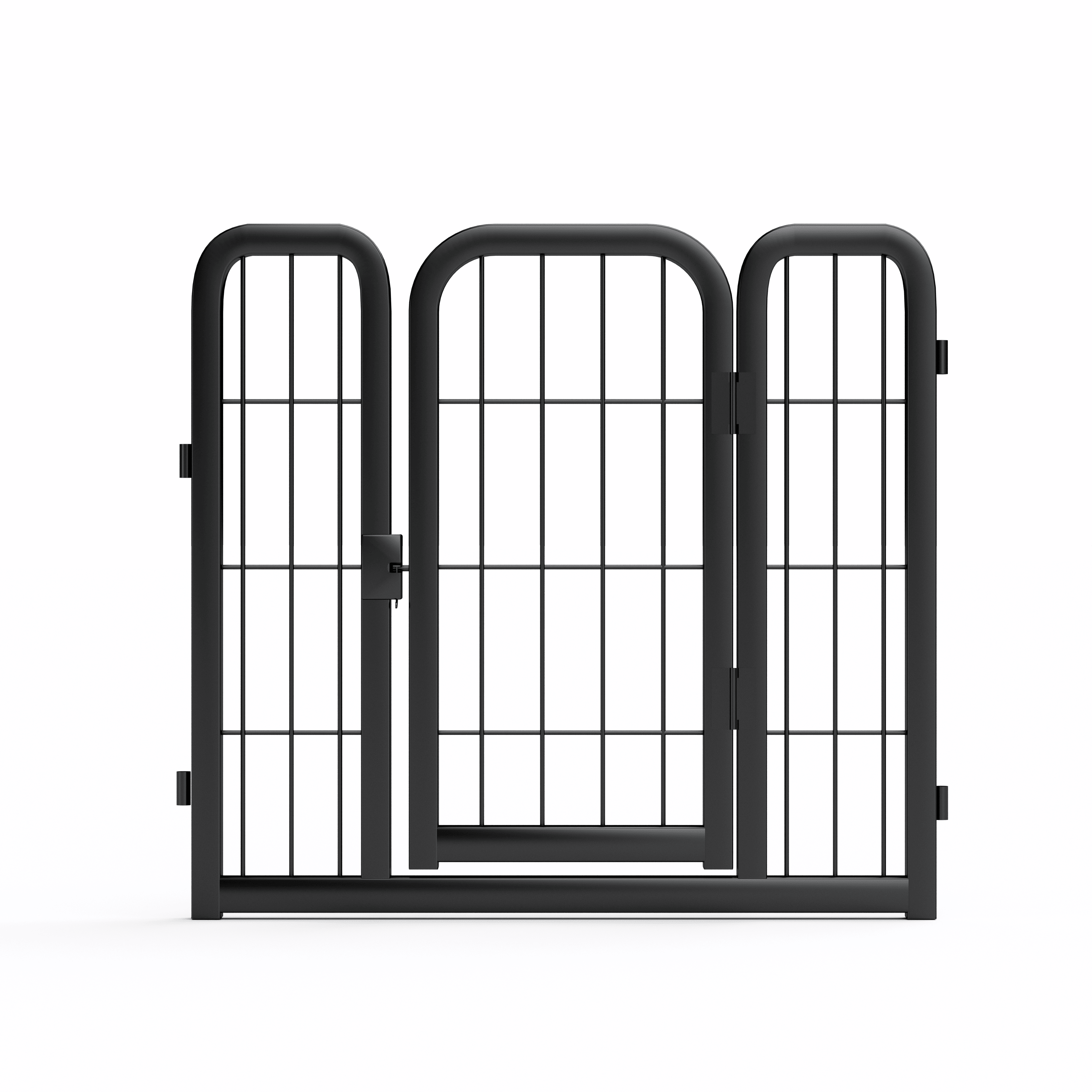 Safety: To ensure its safety, the top of the iron bar is designed with a rounded dome to protect the dog's paws from injury. The bar is easy to insert into the ground to stabilize your dog's play pen. In addition, the automatic gravity-actuated locking mechanism will ensure that you can open and close the door without any problems and reduce the chances of the dog unlocking the door itself. All of this is designed for absolute safety, so you can really relax.