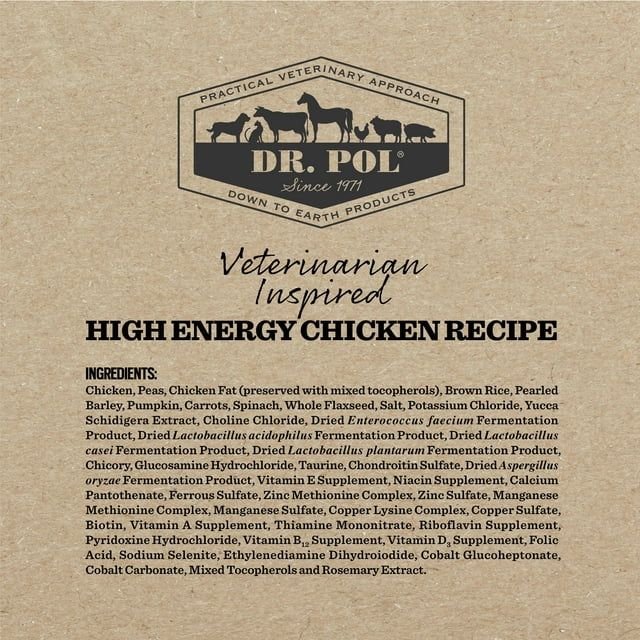 Dr. Pol High Energy Limited Ingredient Chicken Recipe for Active Adult Dogs and Growing Puppies is formulated to meet the nutritional levels established by the AAFCO Dog Food Nutrient Profiles for all life stages including growth of large size dogs (70 lb. or more as an adult)