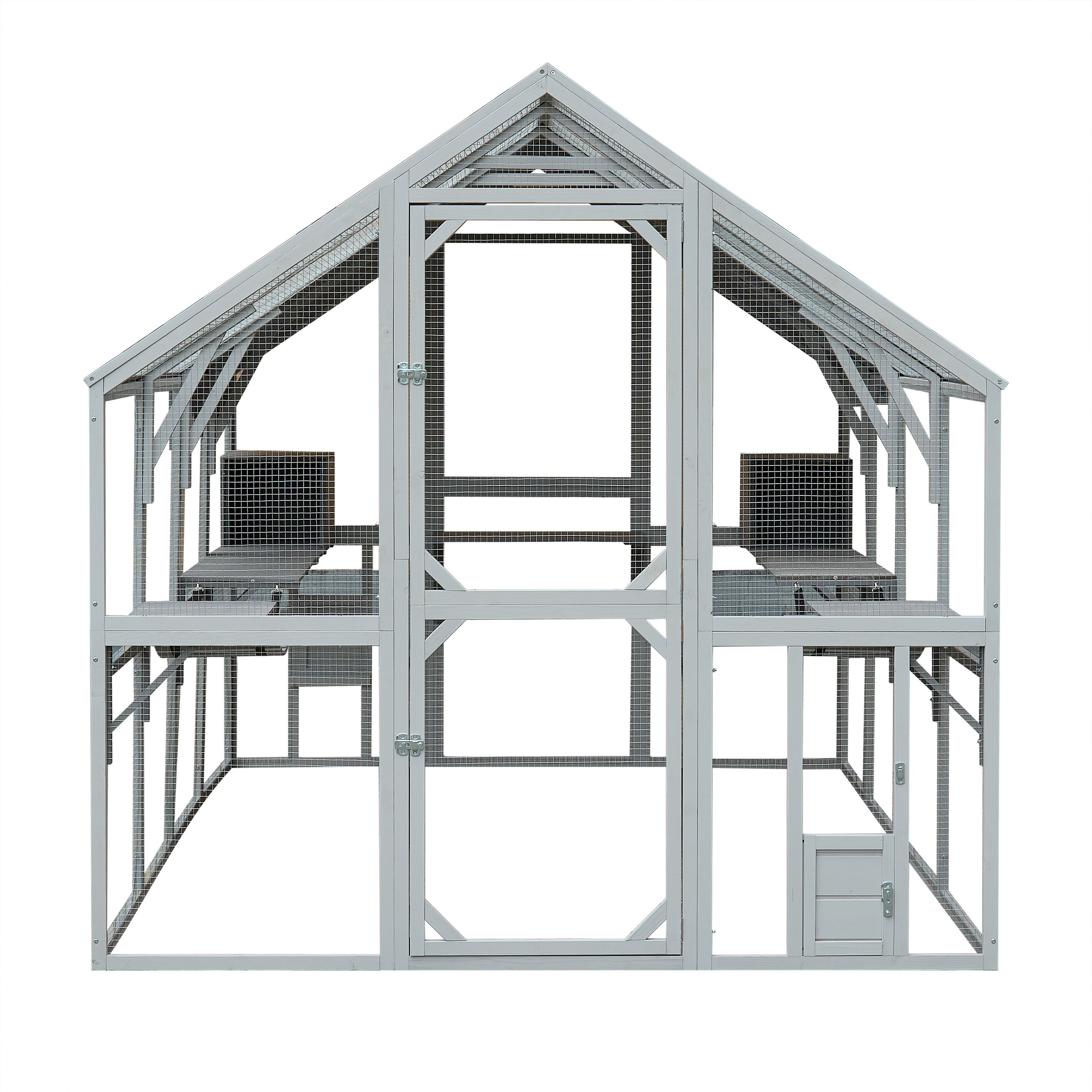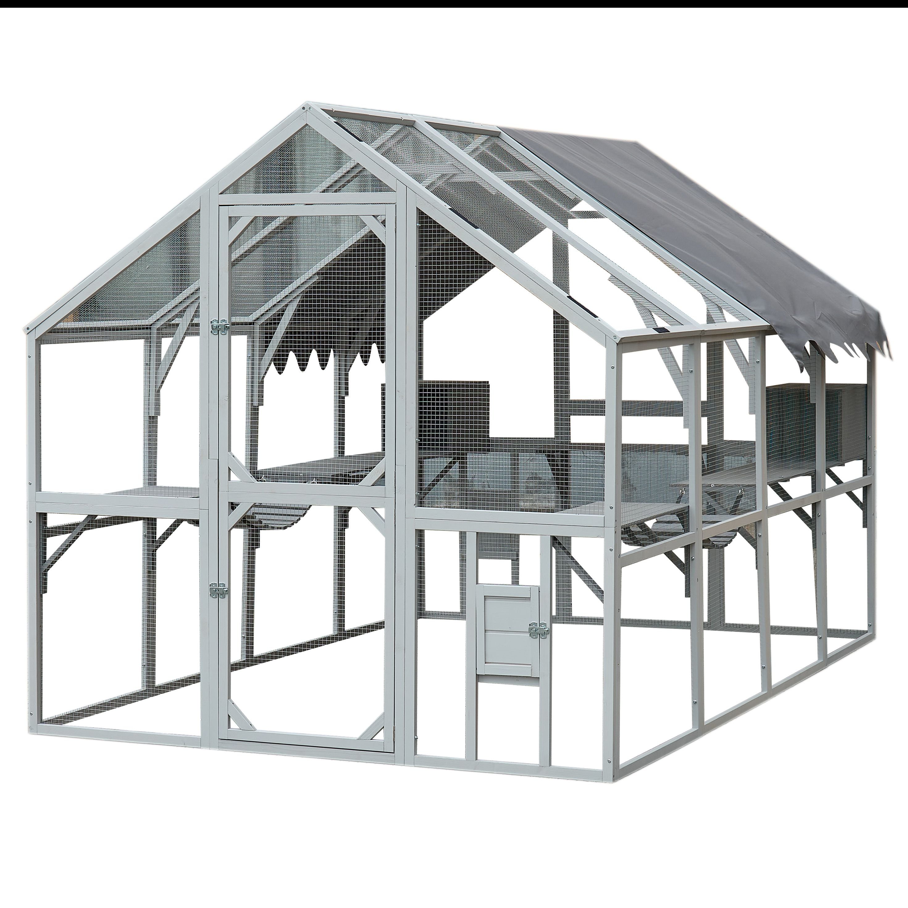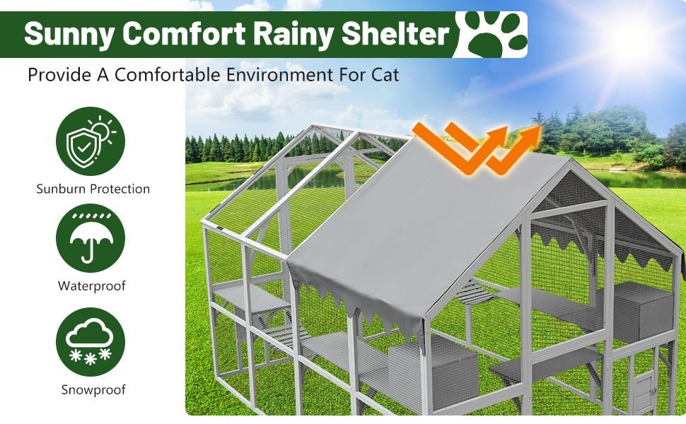 Home > Outdoor Cat House Cat Enclosures 110" Large Kitten Playpen with Platforms,Upgrade Waterproof Cover-Grew&White