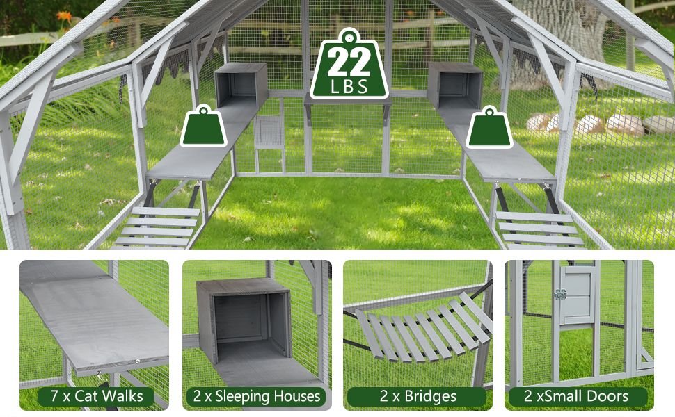 WALK IN DOOR: The large front door for both you and your pet to walk in and out the cat cage conveniently. It makes the feeding and cleaning super easy.