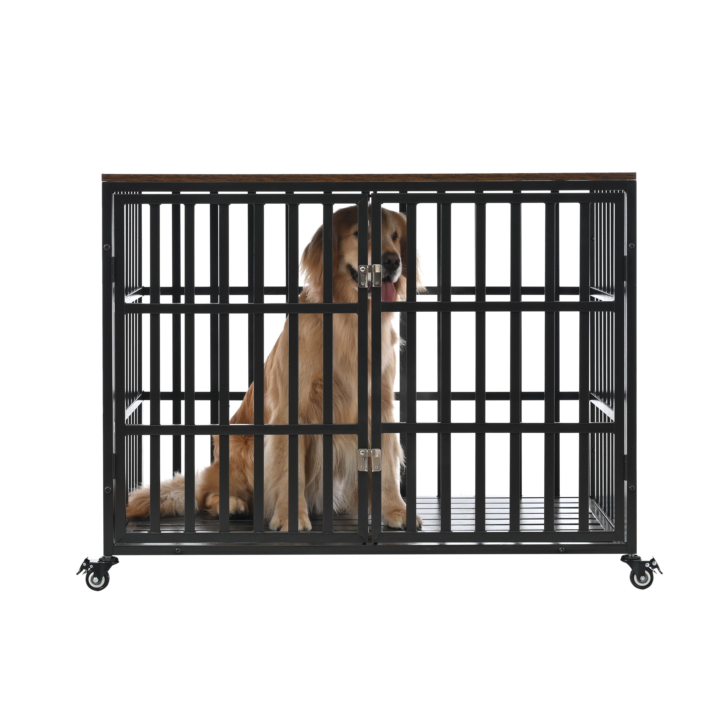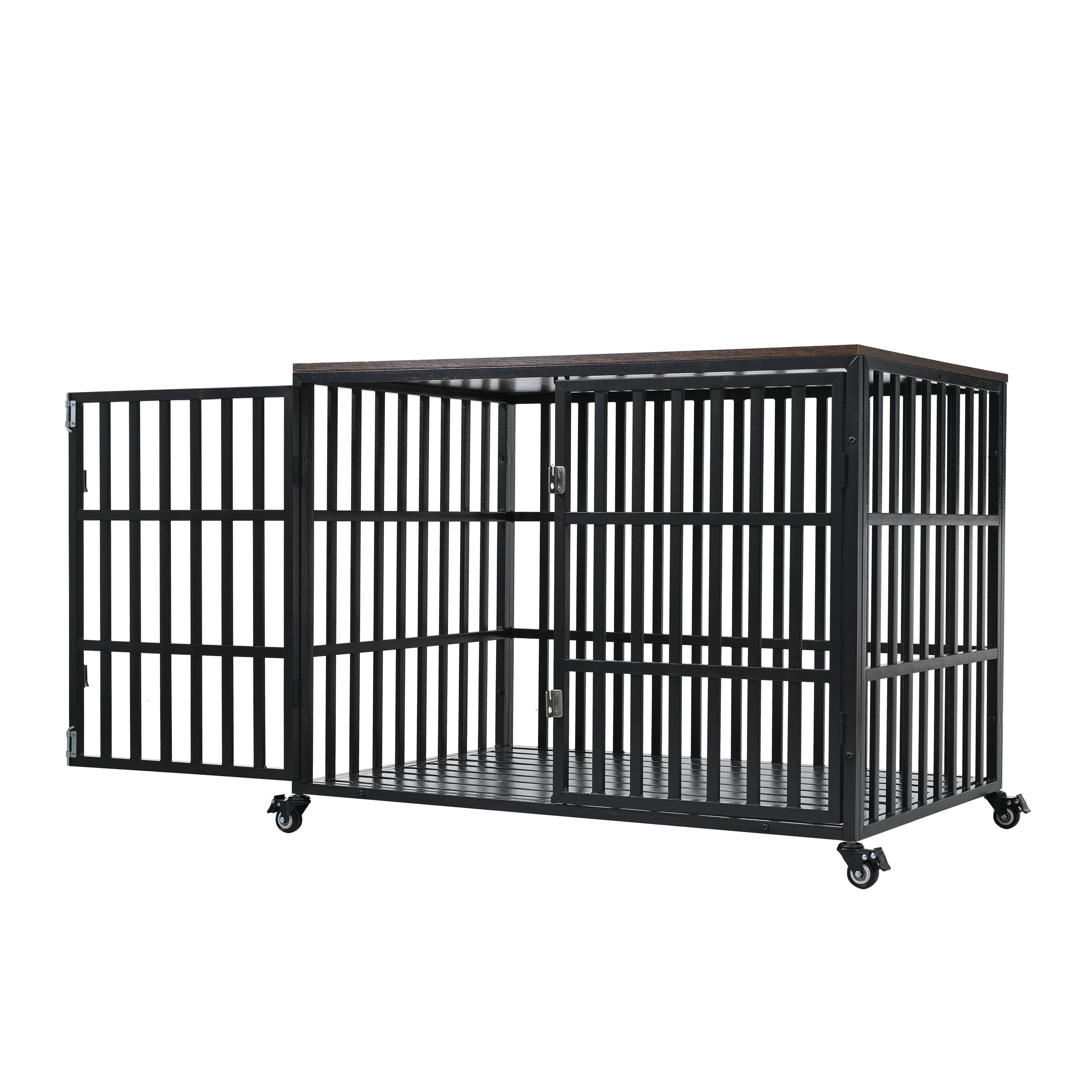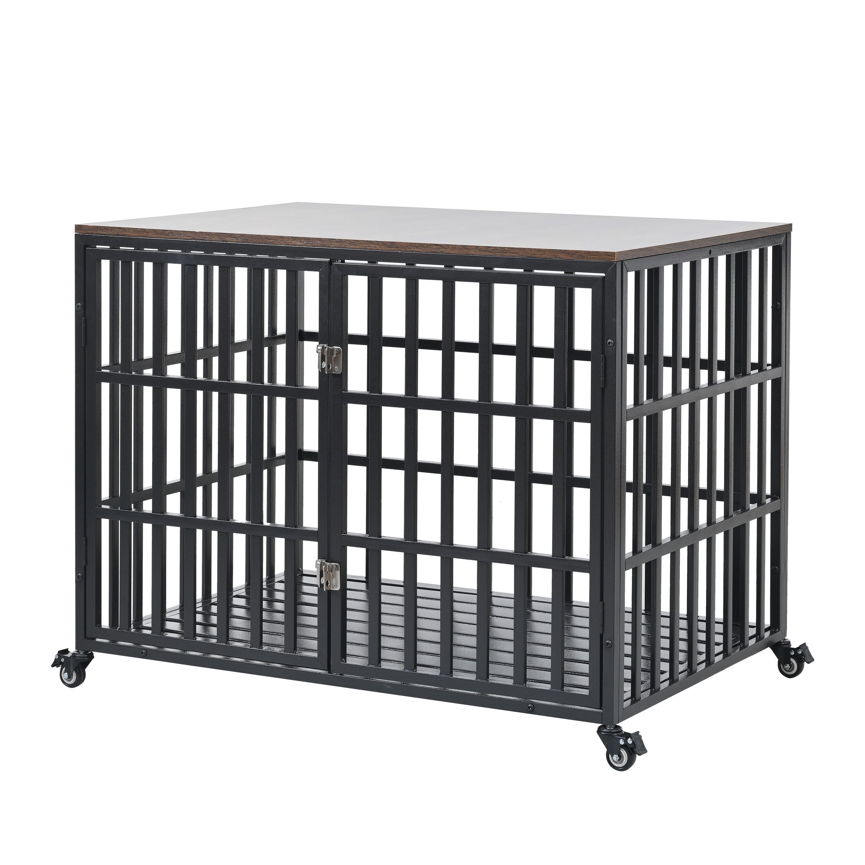 42" Heavy Duty Dog Crate for Large Medium Dogs, Furniture Style cage with 4 Lockable Wheels and 2 Locks