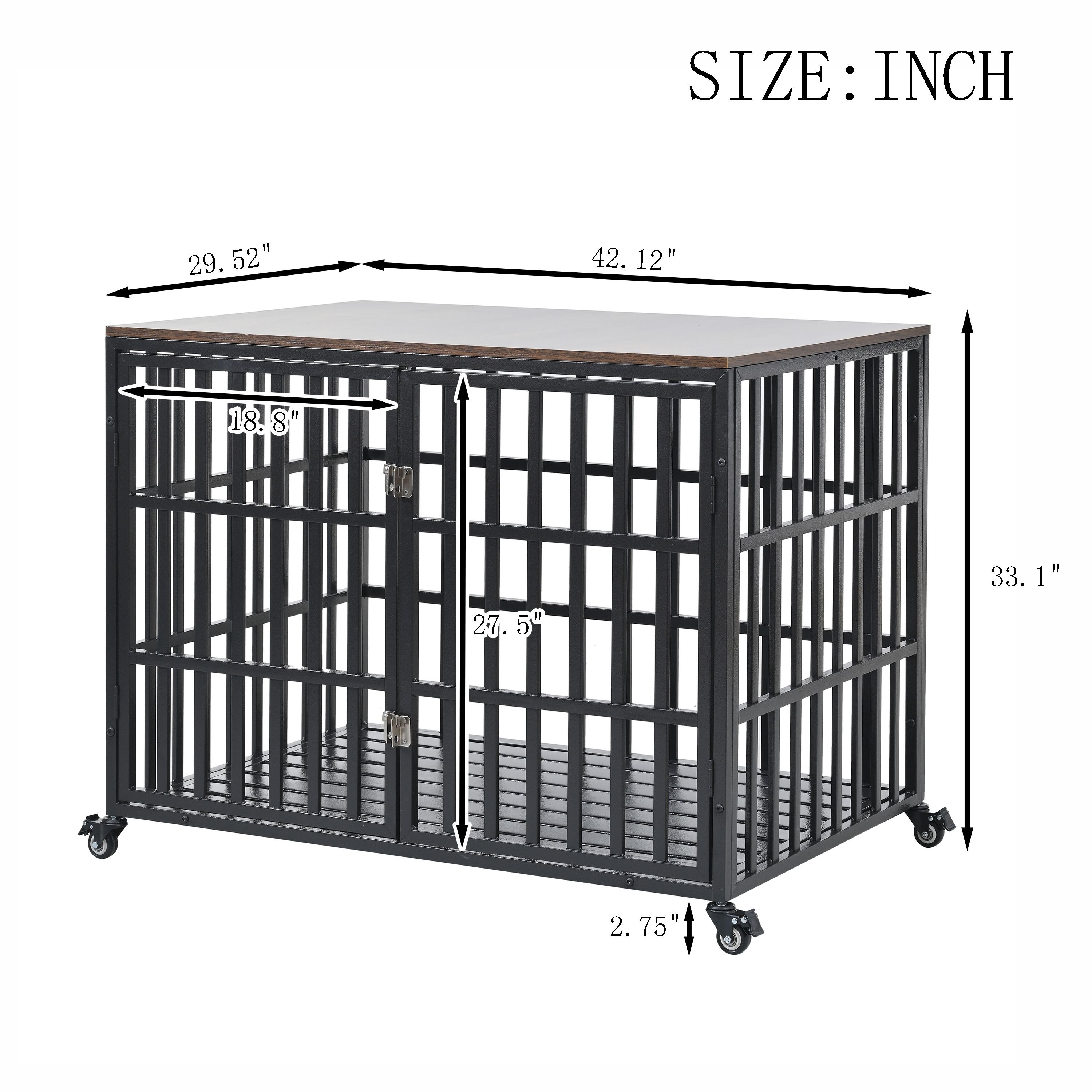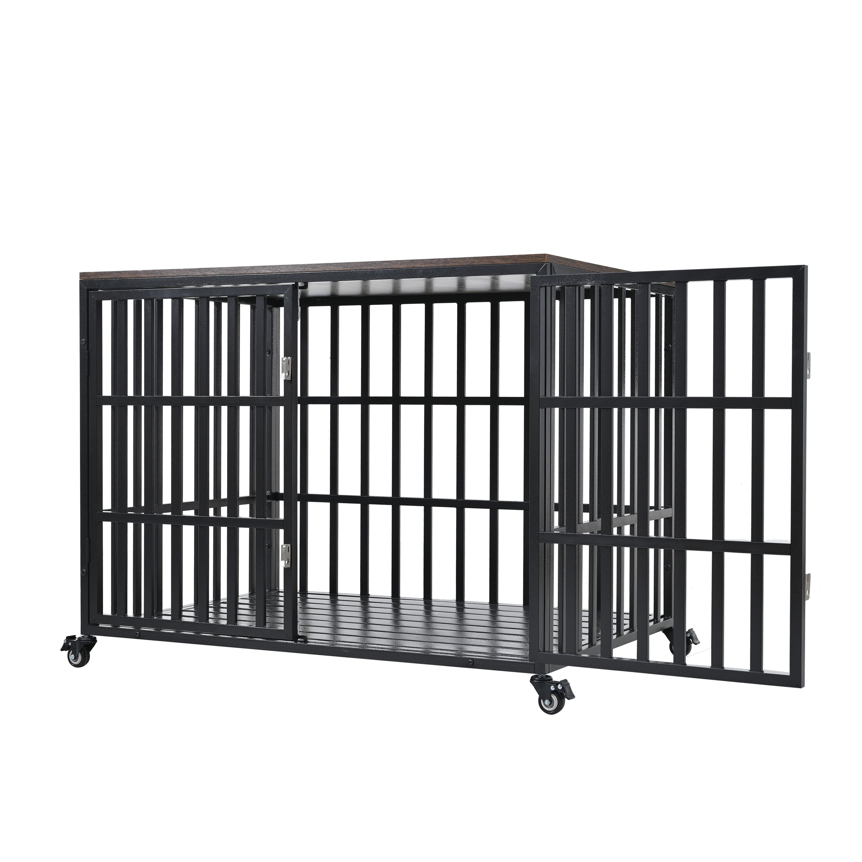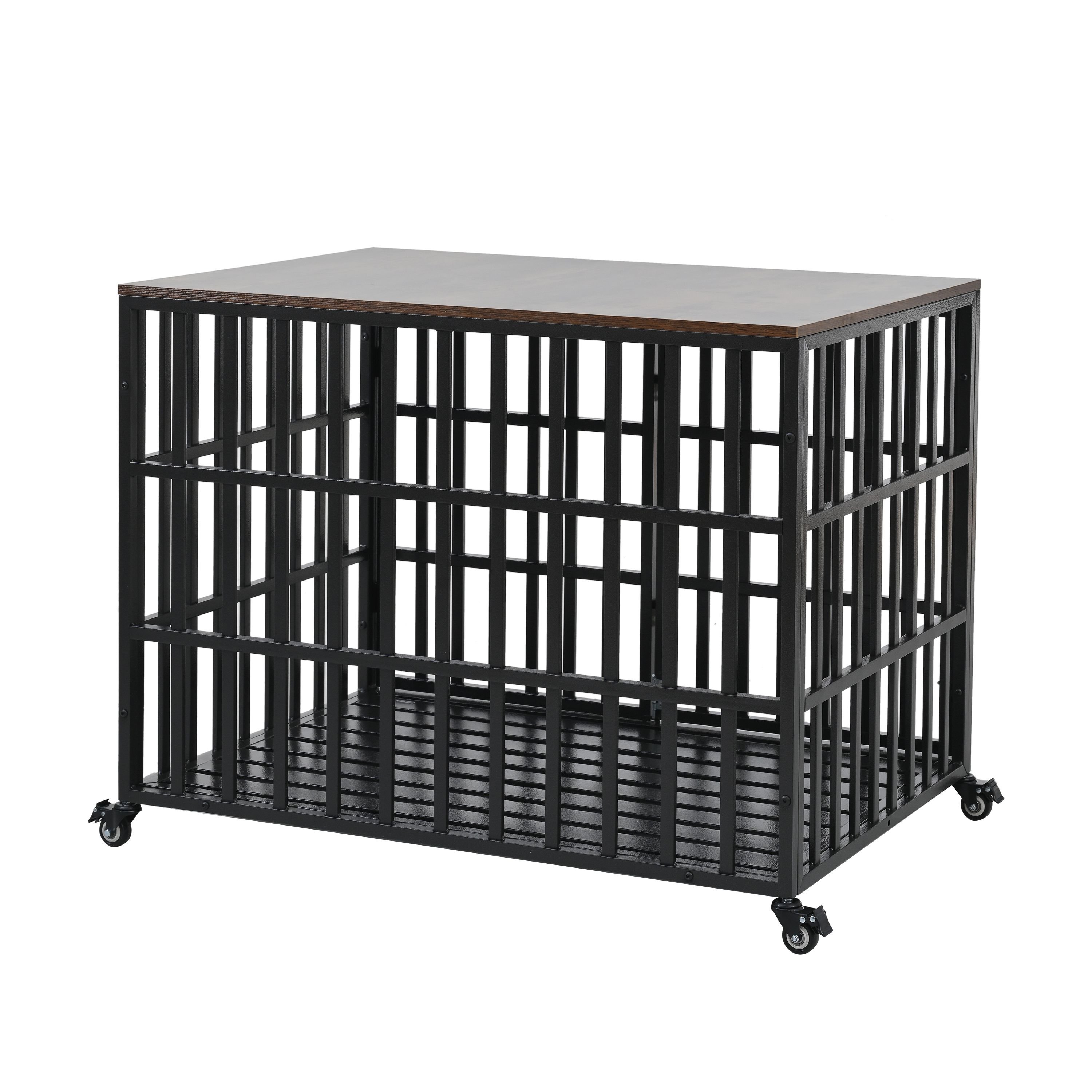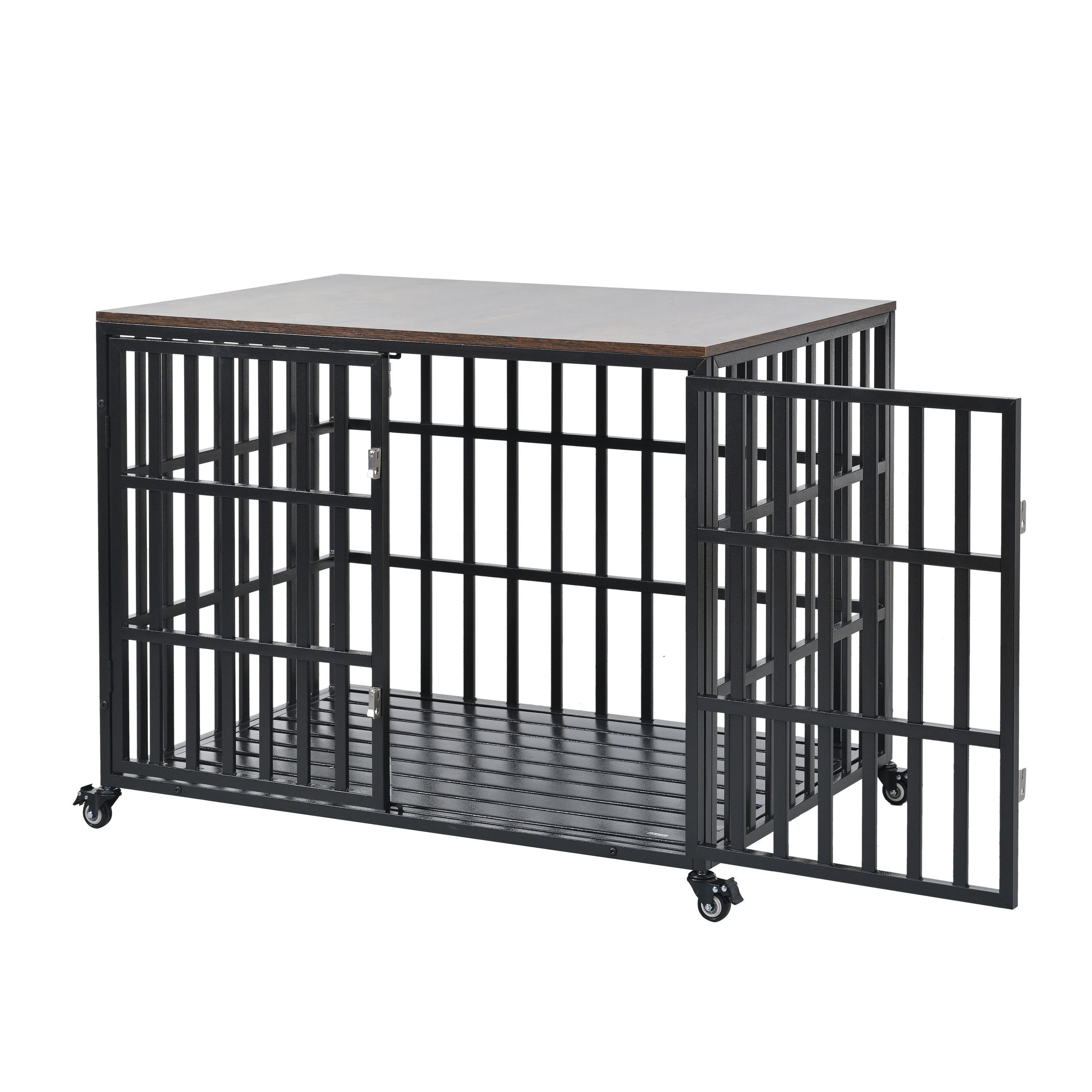 42" Heavy Duty Dog Crate for Large Medium Dogs, Furniture Style cage with 4 Lockable Wheels and 2 Locks