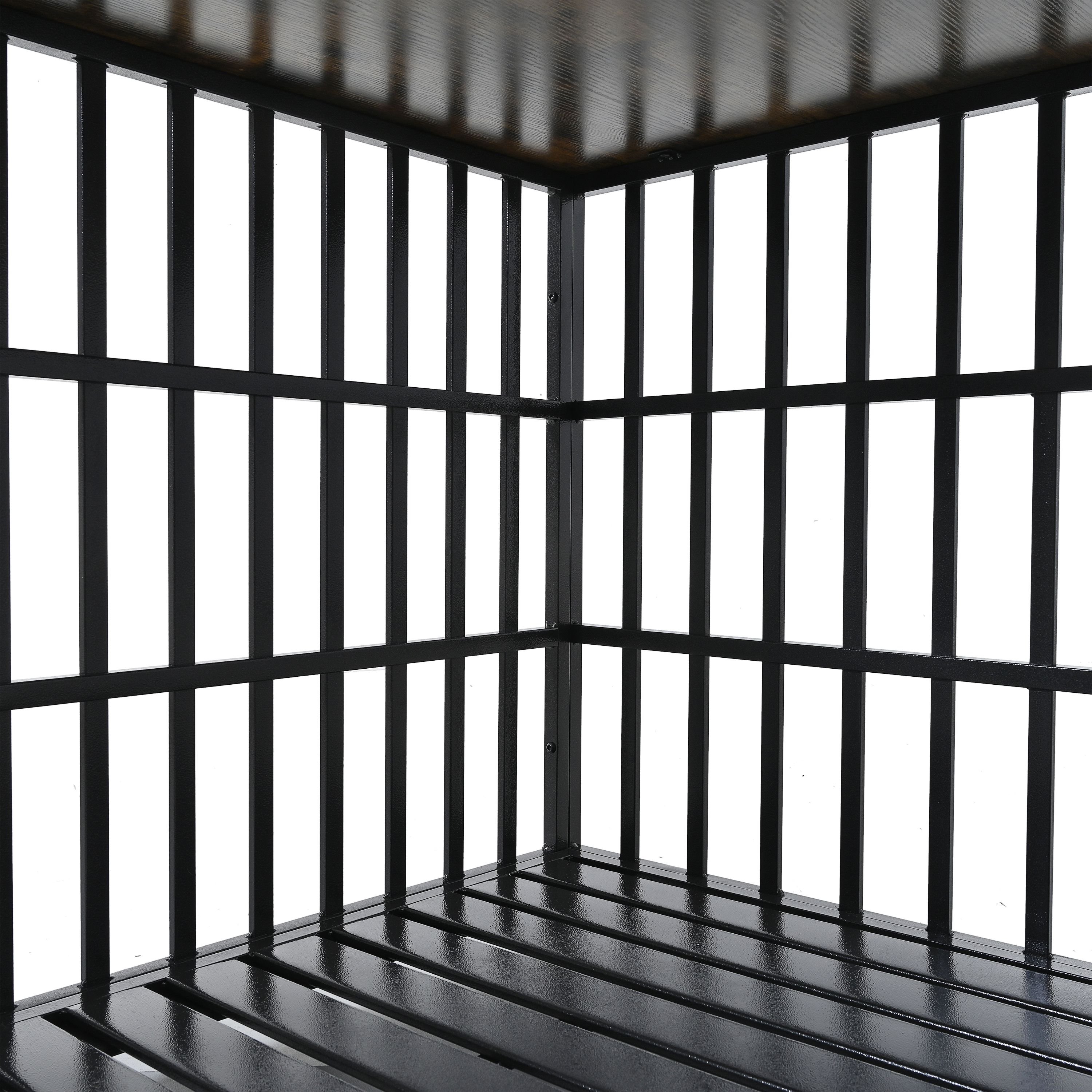 Sturdy Structure with Reliable MaterialHeavy duty frame made from sturdy steel and durable particleboard. All smooth metal bars are strong enough to ensure that your naughty pup can be safe inside. The metal coating and board surface are non-toxic in case it is chewed or licked by the dog.