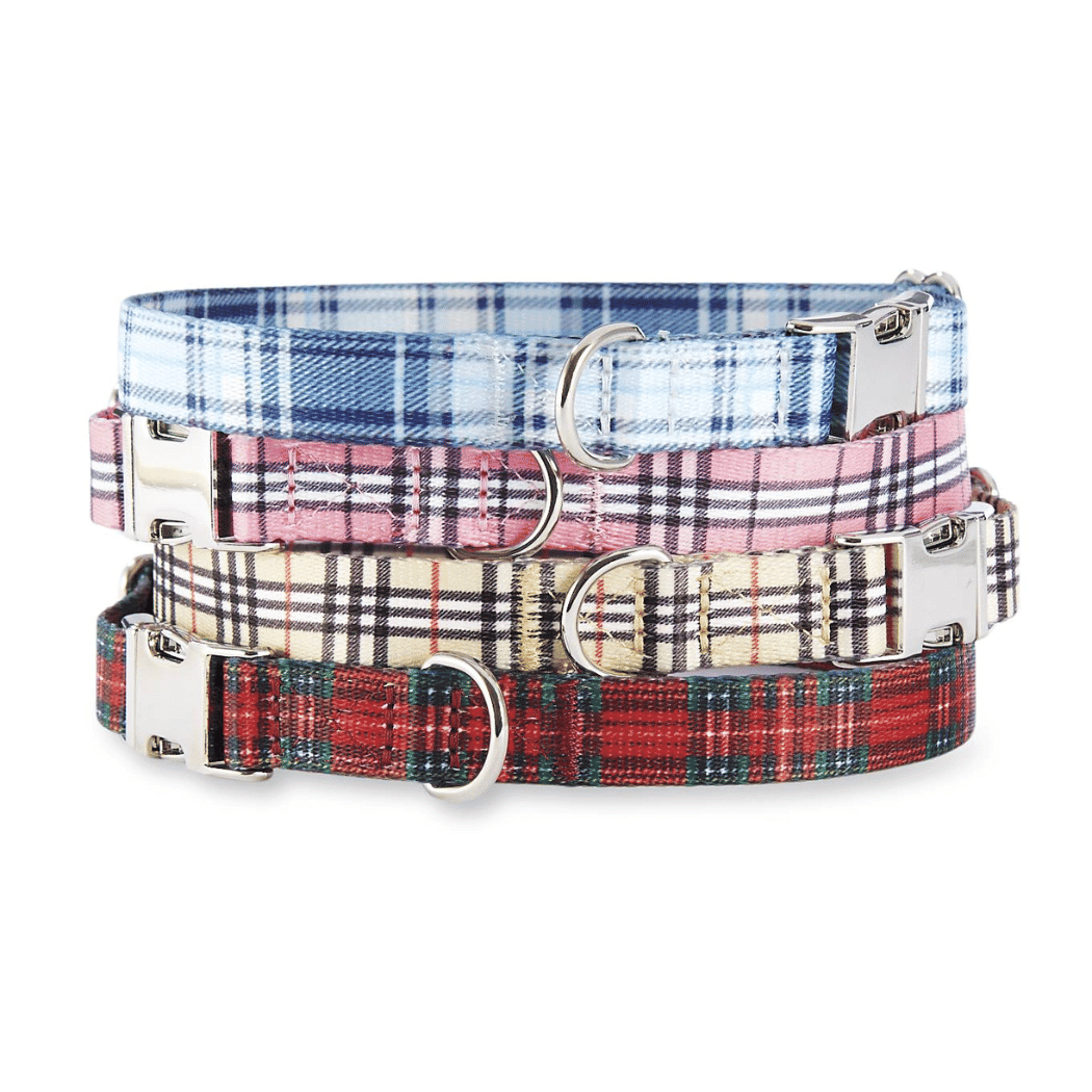 Adjustable Collar - Quick Release Metal Alloy - Blue Plaid