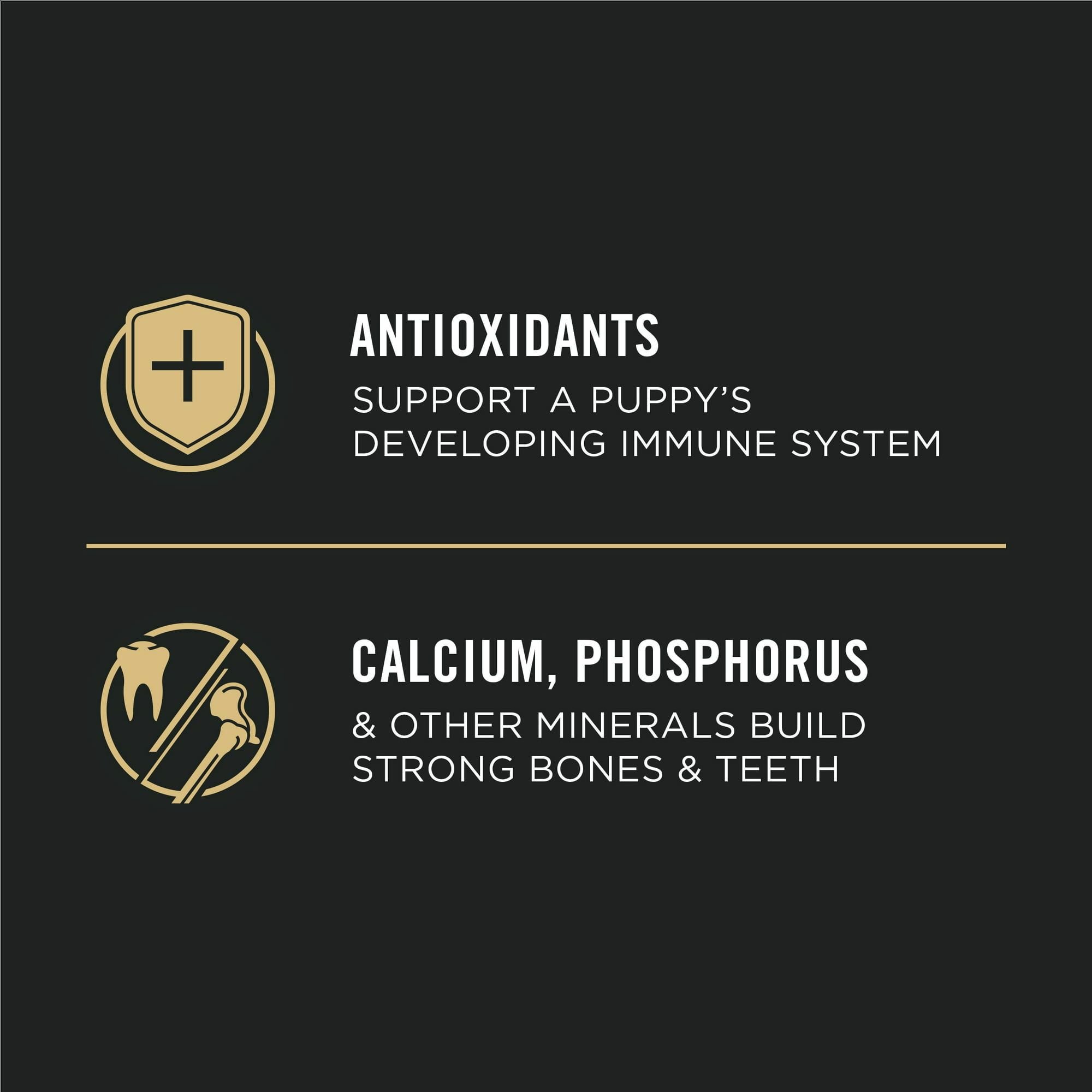 Purina Pro Plan Chicken and Rice Dry Dog Food for Puppies, Make your dog's nutritional needs a priority with Purina Pro Plan Brand Dog Food Puppy Chicken and Rice Formula dry puppy food. High-quality protein sources, including chicken as the first ingredient, help your puppy develop healthy muscles so he can keep up with his busy agenda. DHA from omega-rich fish oil in this puppy formula nourishes his brain and vision development, and calcium, phosphorus and other minerals build strong teeth and bones. This super-premium dog food has no artificial colors or flavors to keep your puppy running to his bowl.