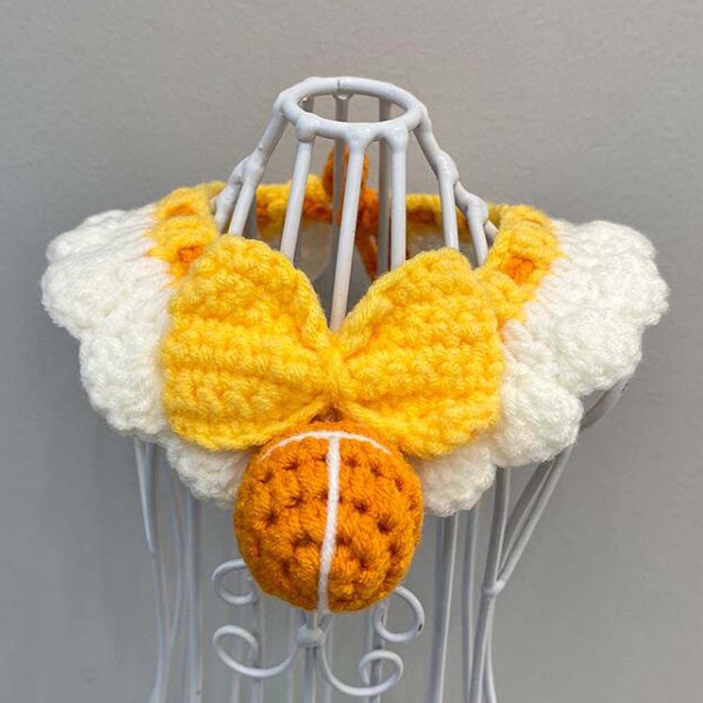 Yellow Handmade Knitted Cat Dog Collar Pet Crochet Silent Bell Scarf Bib Photography Prop Knotbow Necklace Yellow Handmade Knitted Cat Dog Collar Pet Crochet Silent Bell Scarf Bib Photography Prop Knotbow Necklace